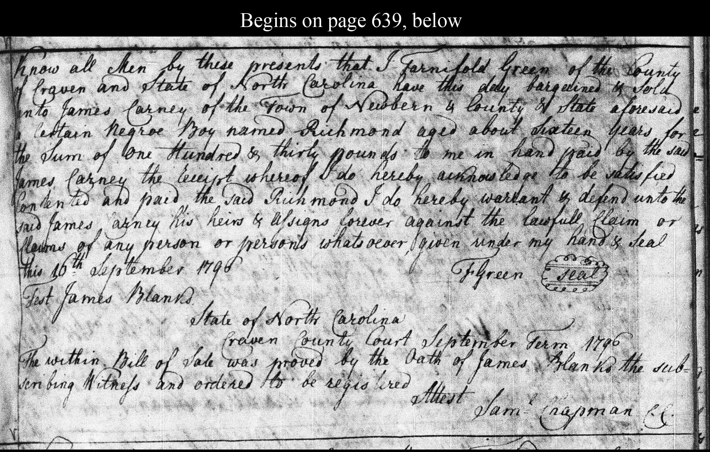 Bill of sale; Book 32, Page 639.