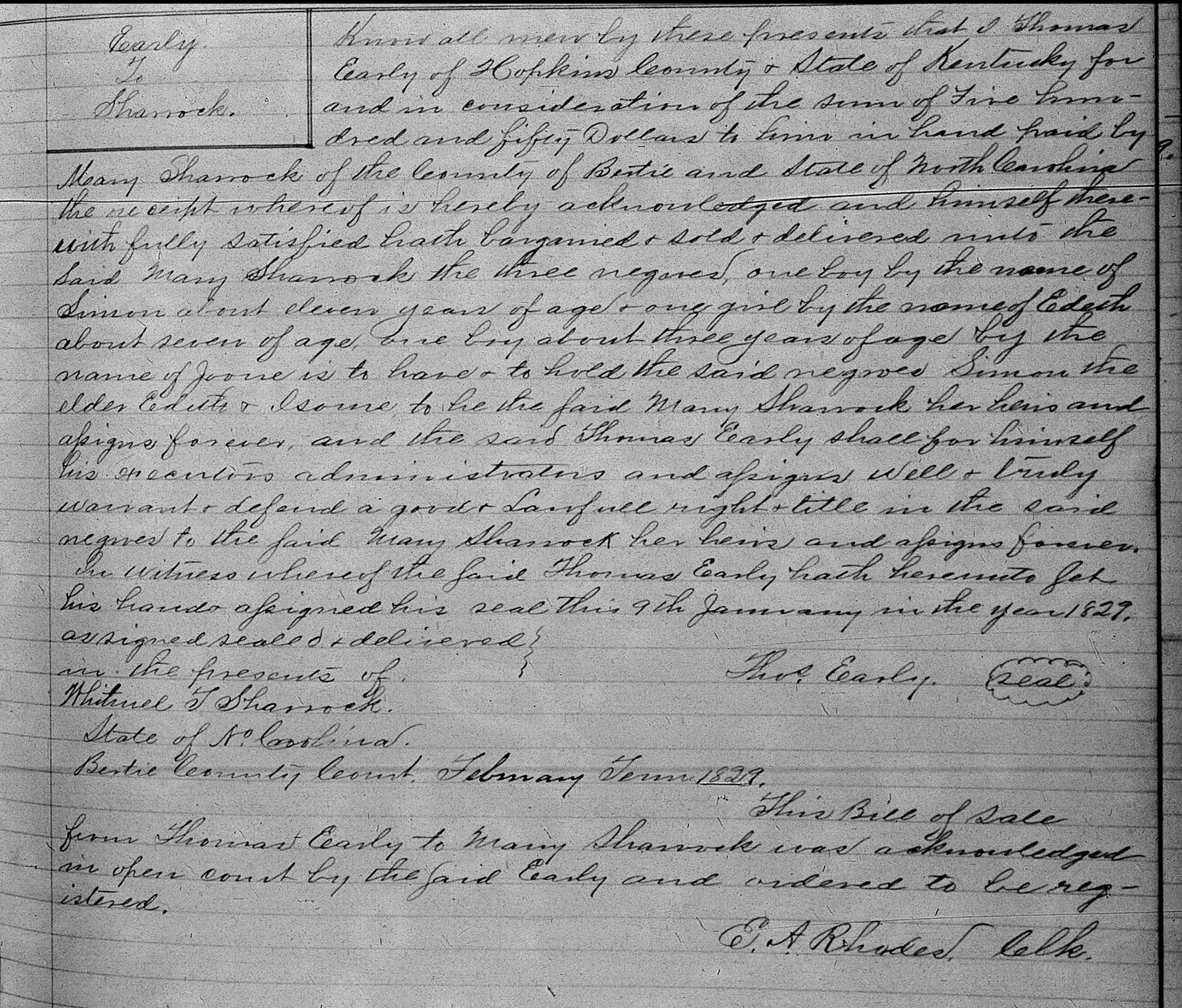Bill of sale; Book CC, Page 113.
