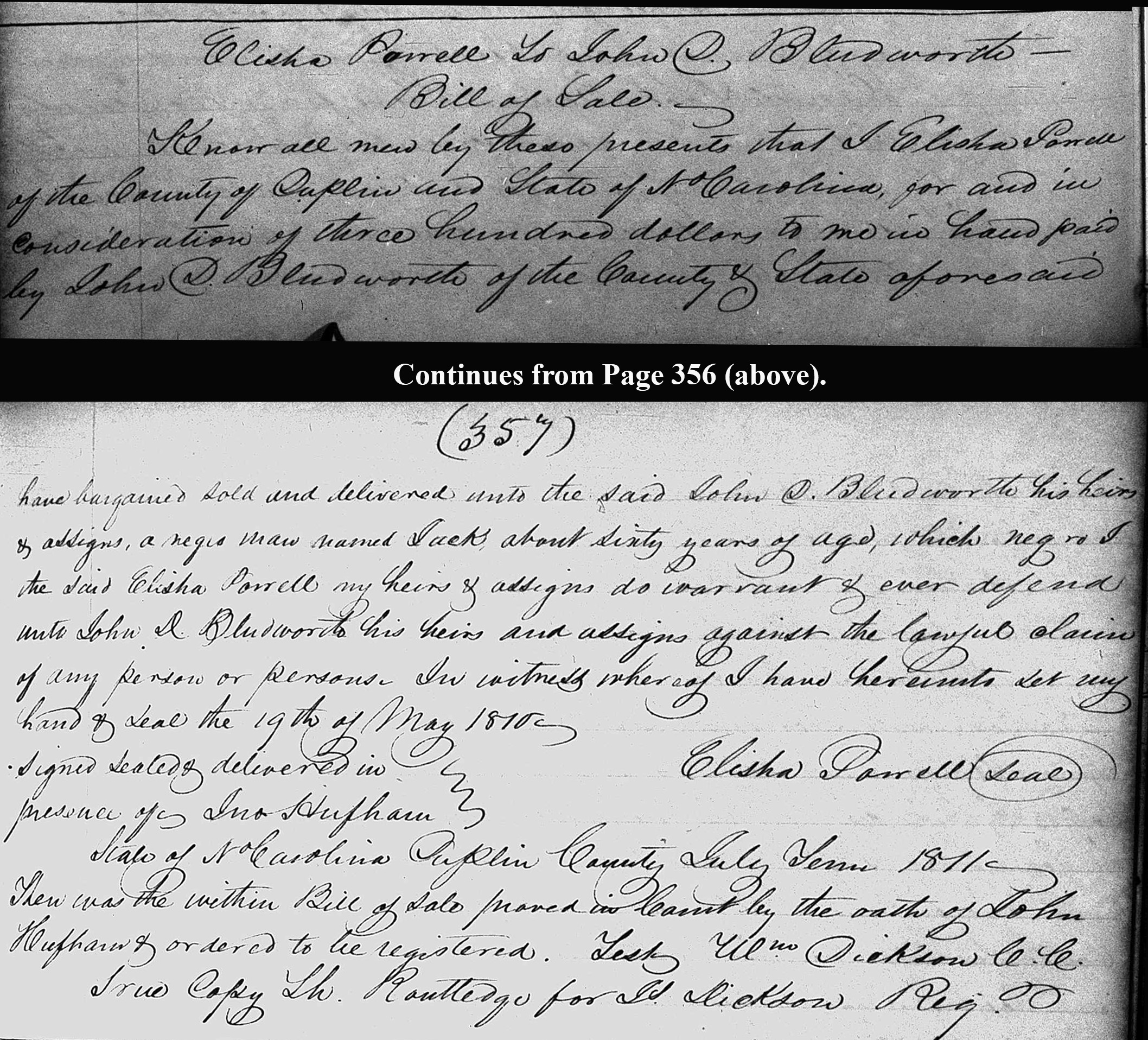 Bill of sale; Book 4A, Page 356.