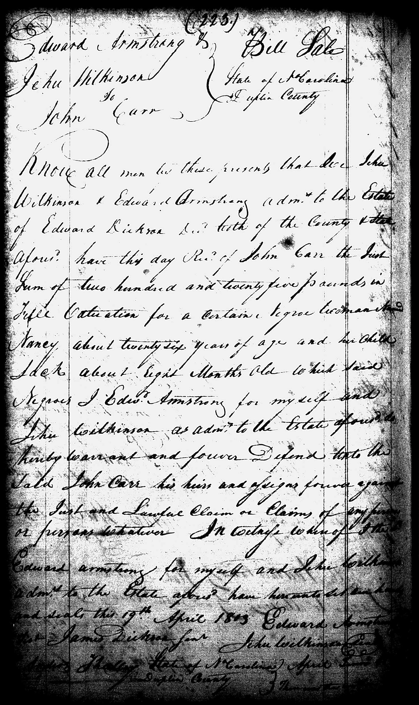 Bill of sale; Book O, Page 223.