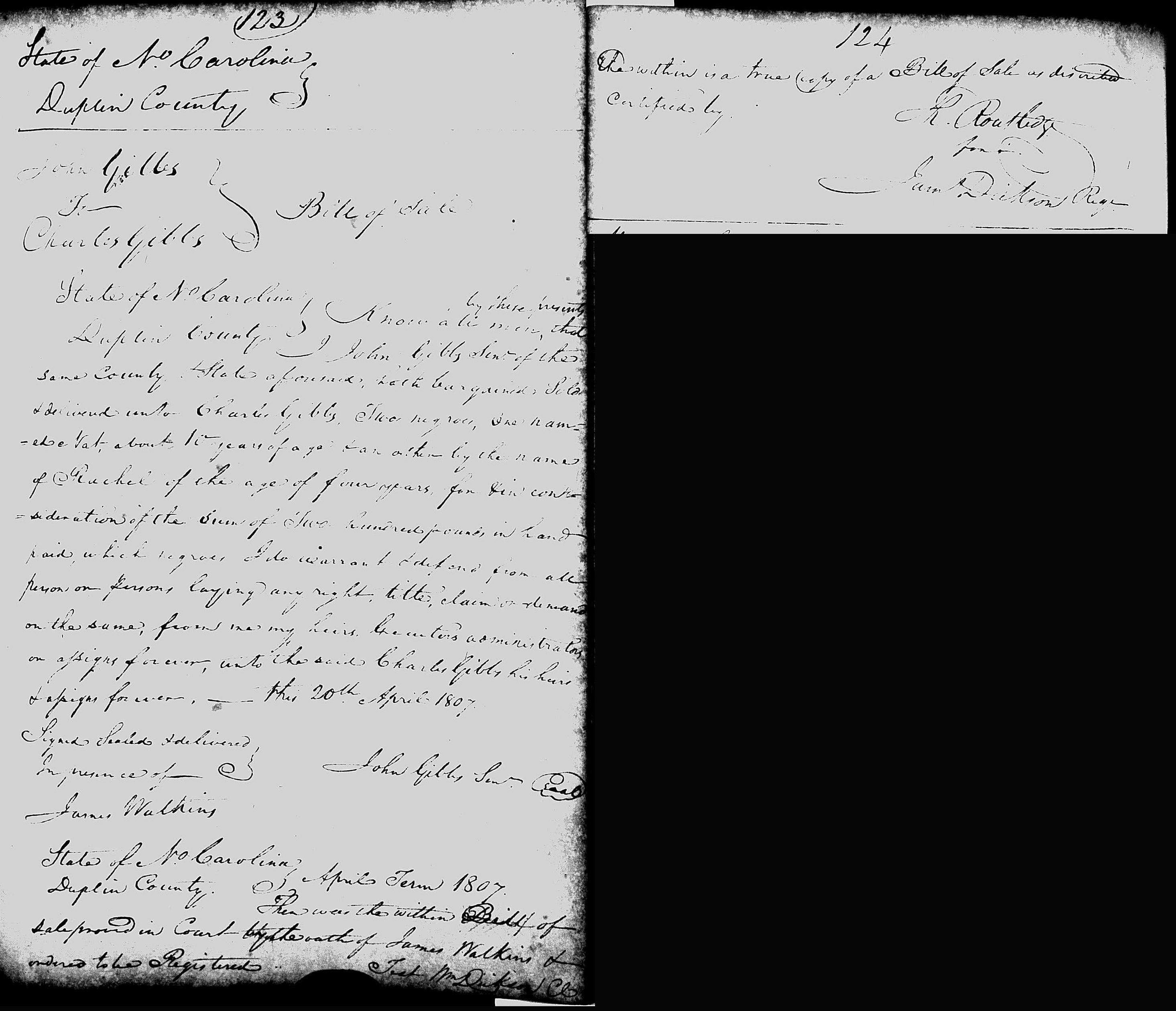Bill of sale; Book Q, Page 123.