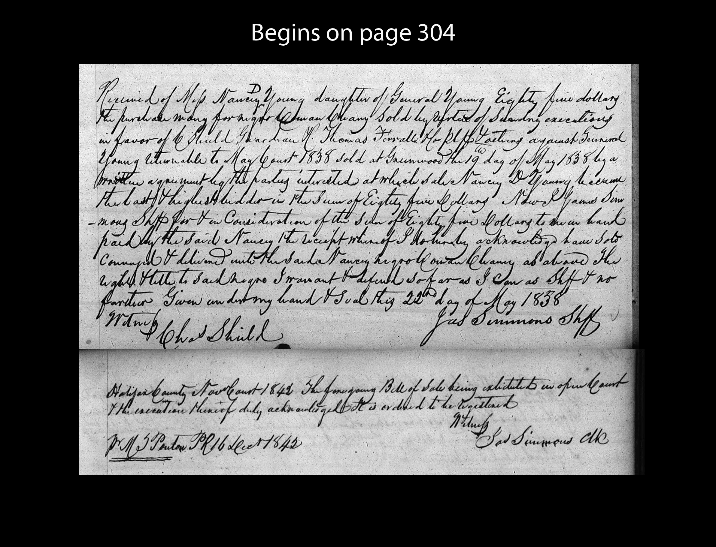 General Young sells enslaved woman Chany to Miss Nancey D. Young for $85