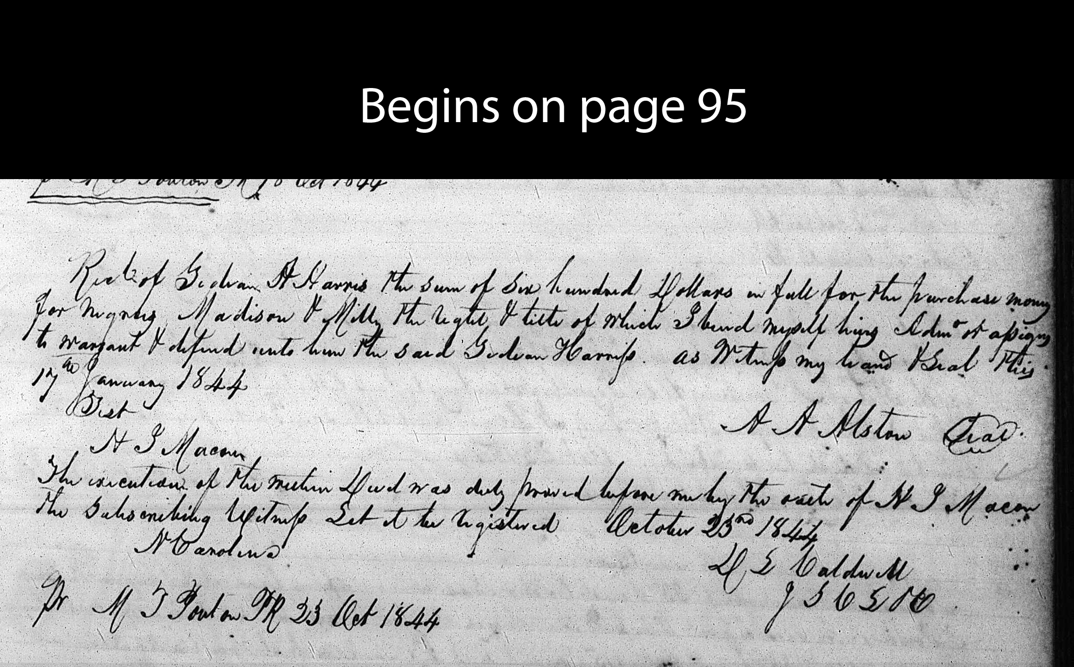 A. A. Alston sells enslaved Madison and Milly to Graham A. Harris for $600
