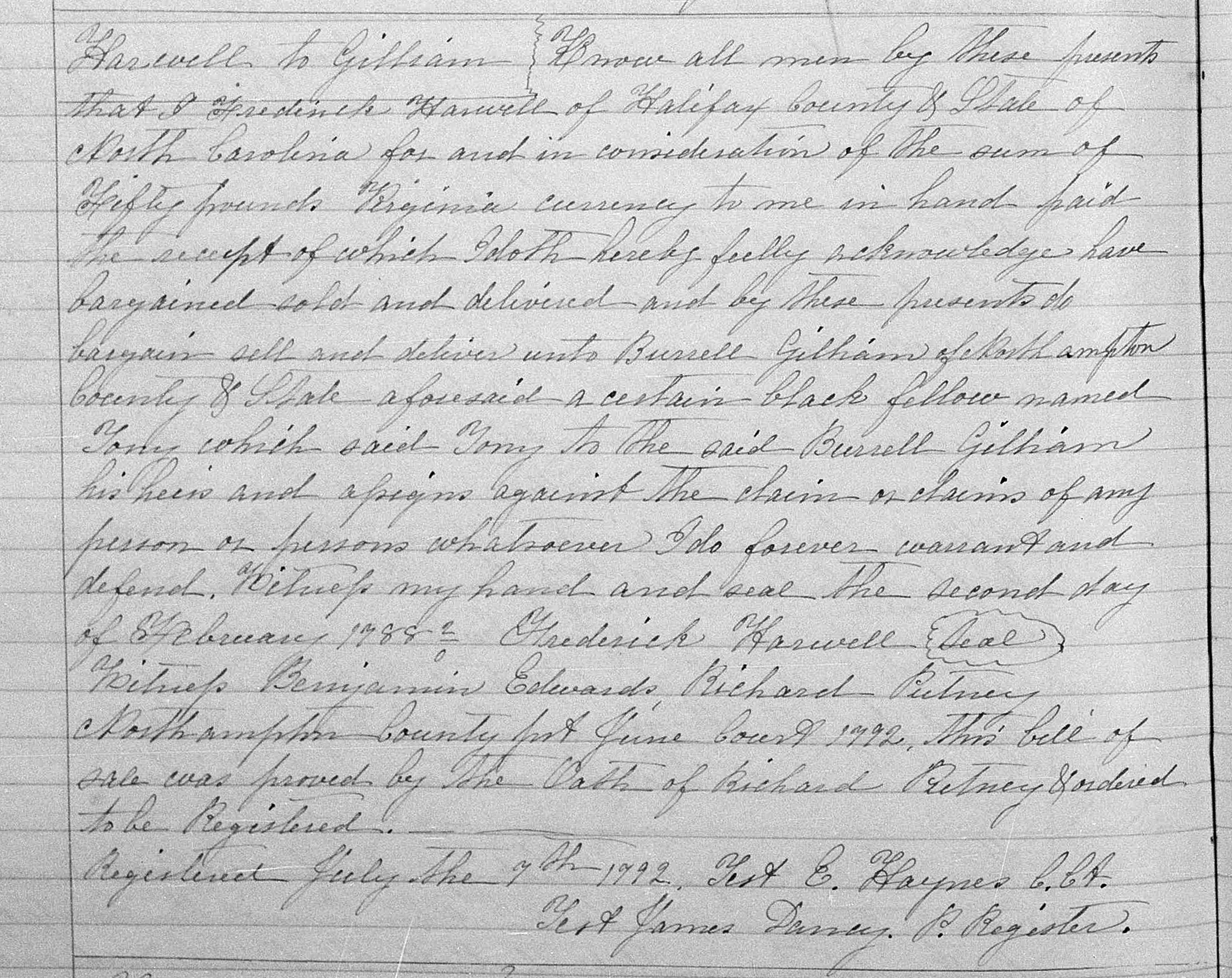Bill of sale; Book 9, Page 186.